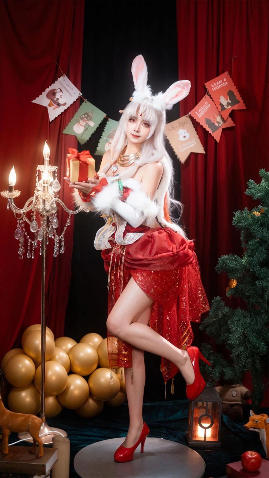 矢泽焰焰子丶所扮演的兔兔迦南,宛如从梦幻画卷中走出的精灵。她身着精致的服饰,每一处细节都完美地还原了游戏中的角色。那灵动的兔耳,俏皮地耸立着,为整个造型增添了一份可爱与活泼。服饰的色彩鲜艳而夺目,仿佛是用最绚丽的画笔勾勒而成,散发着神秘的魅力。