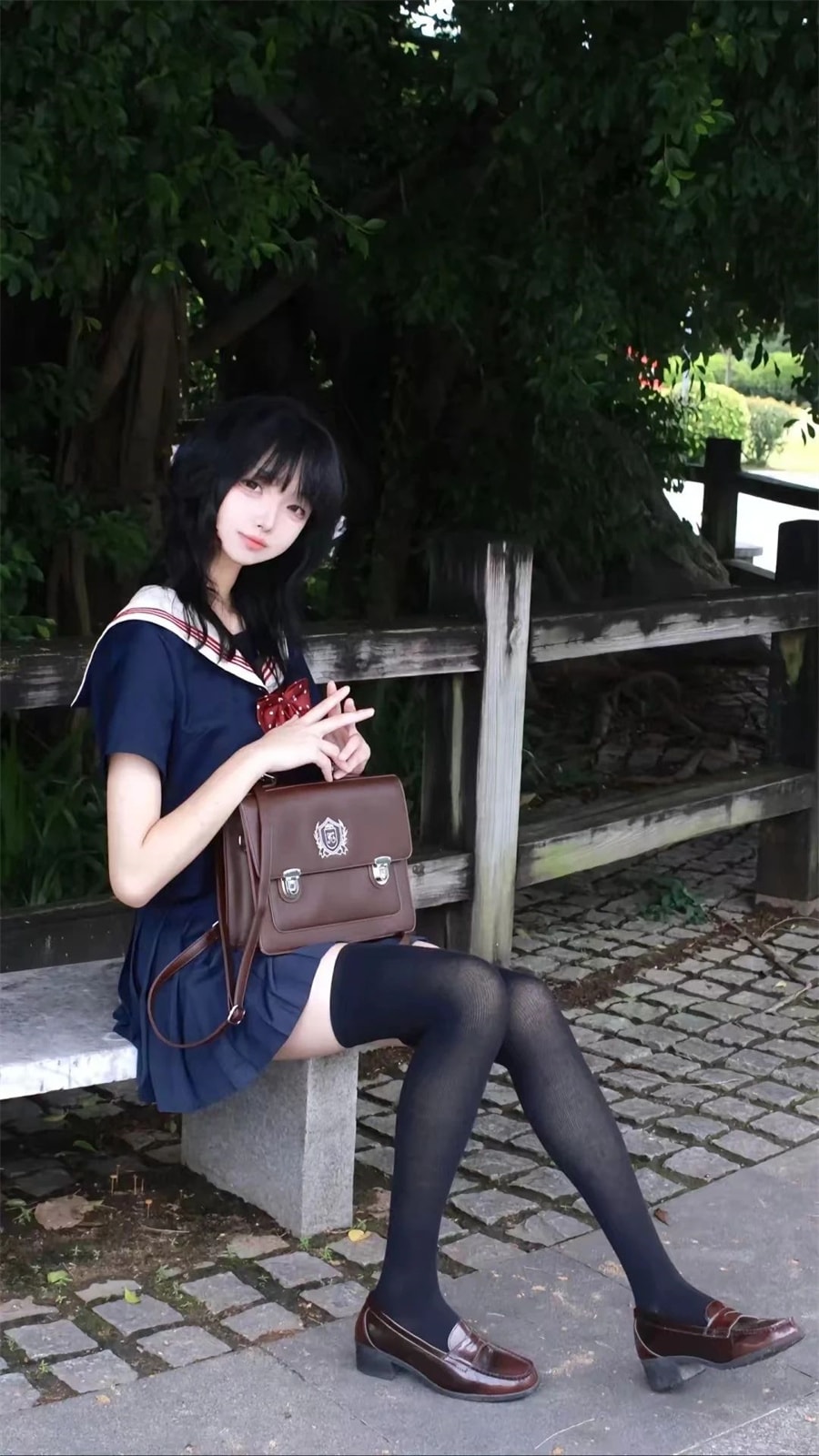 那身水手服穿在她身上,宛如为她量身定制一般。白色的上衣干净纯洁,领口的红色丝带如同跳跃的火焰,彰显出青春的活力。蓝色的百褶裙随着她的动作轻轻摆动,像是风中盛开的花朵。水手服的每一个细节都处理得恰到好处,展现出了青春少女的俏皮与可爱。它不仅仅是一套服装,更像是一种象征,象征着校园里的纯真岁月和青春梦想。