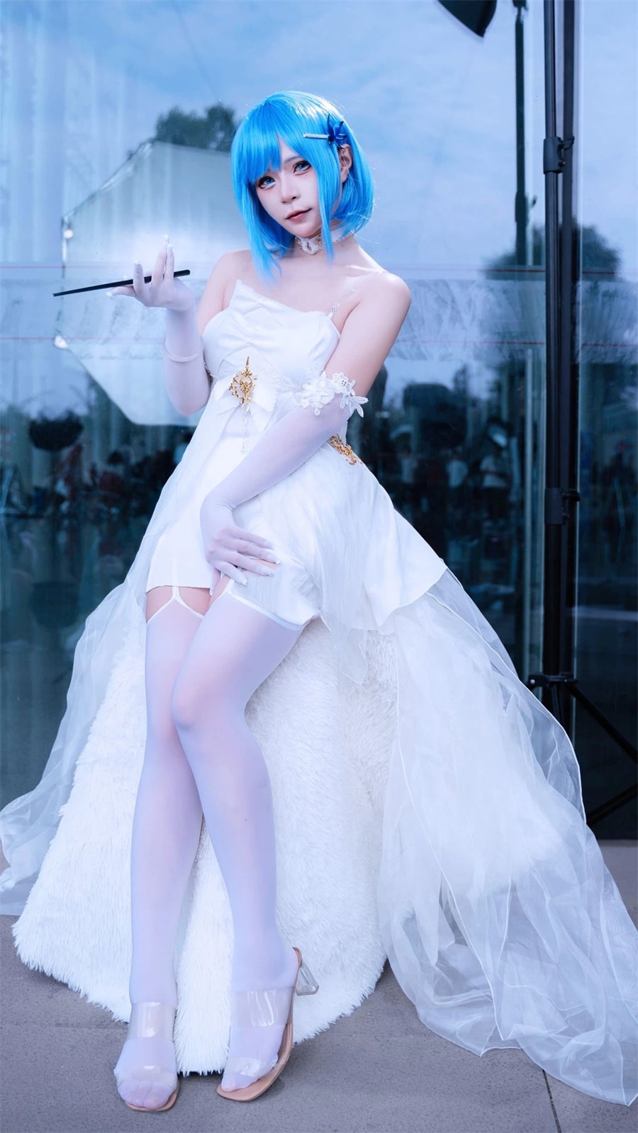 雨萝萝呀扮演的恰巴耶夫,那一头湛蓝的秀发犹如深邃的海洋之波,在阳光下闪烁着迷人的光泽,每一丝发丝都像是被赋予了灵动的生命力,随着她的动作轻轻摇曳,仿佛在诉说着神秘的海洋传说。而那身洁白的长裙,则如同海面上涌起的纯净浪花,轻柔地包裹着她那傲人的身材,裙摆的线条流畅而优美,随着她的步伐微微摆动,似是在翩翩起舞。