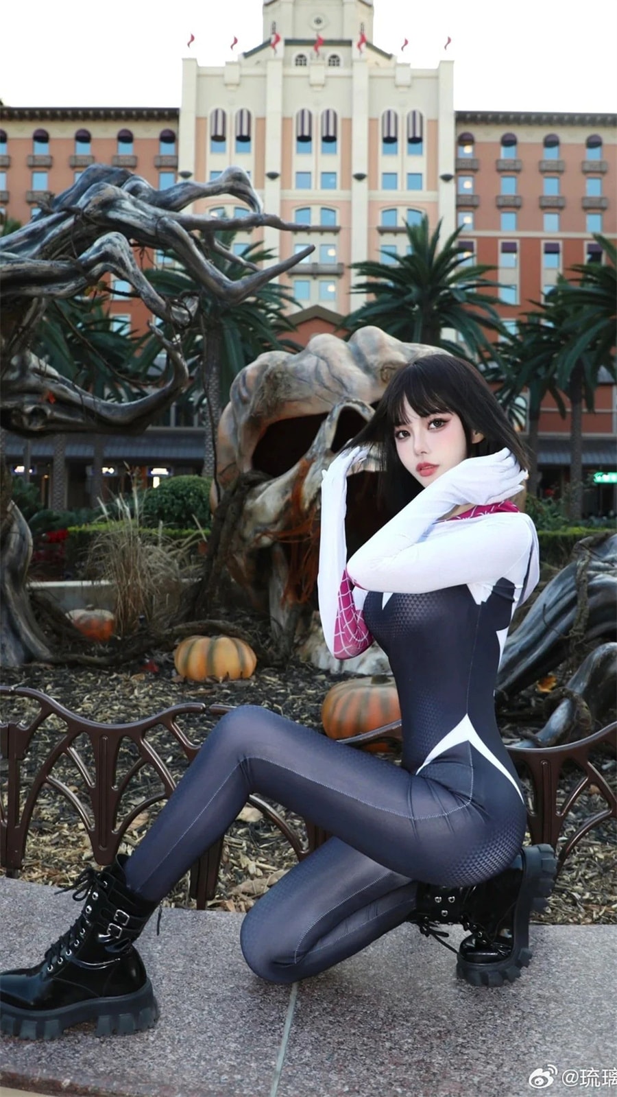 在环球影城这个充满奇幻与欢乐的地方,琉璃青 runa 酱所扮演的格温宛如一颗璀璨的明星,吸引着无数人的目光。她身着的连体衣将格温的独特魅力展现得淋漓尽致,却也因太过显身材而让她直呼 “不敢出门”。