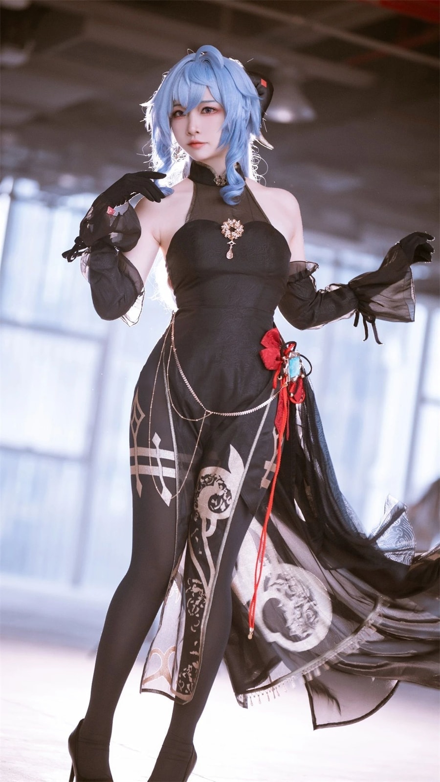 二佐 - Nisa 对于甘雨的 cosplay 不仅仅是简单的服饰模仿,更是对角色灵魂的深度诠释。她的眼神中透露出甘雨的清冷与坚定,那是在璃月港历经无数岁月沉淀后的从容。她的表情恰到好处,微微上扬的嘴角带着一丝若有若无的微笑,既有着对世间万物的温柔,又有着身居高位者的疏离。通过她的精彩演绎,我们仿佛看到了那个在月海亭忙碌,守护着璃月的甘雨,在这旗袍与高跟鞋的装扮下,开启了一段别样的尘世闲游。