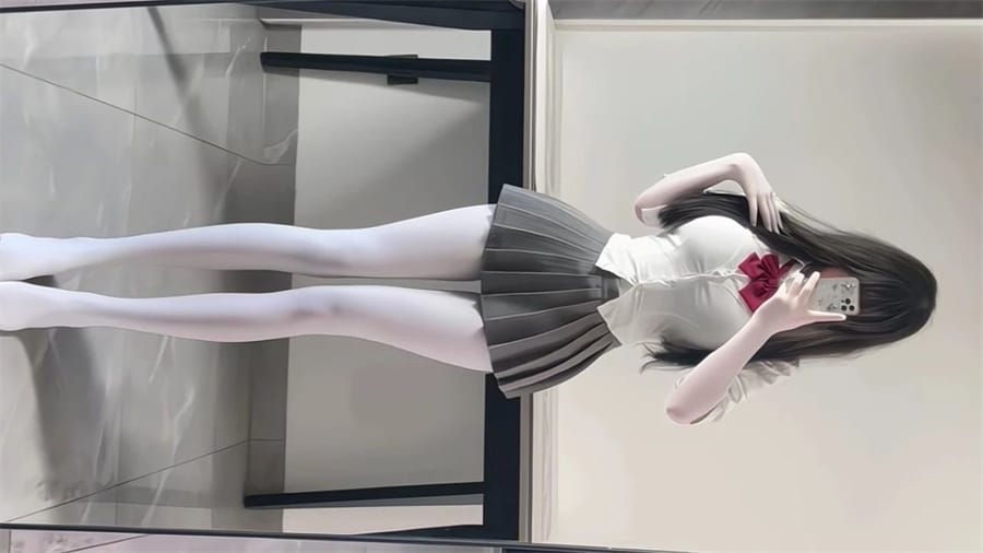 白丝的运用是她穿搭的一大亮点。米菈嫩嫩将白丝作为配饰,巧妙地搭配在裙子上。白丝的质感柔软光滑,与裙子的材质相互映衬,营造出一种细腻而迷人的视觉效果。她的双腿在白丝的包裹下显得更加修长,同时也展现出了女性的柔美与优雅。