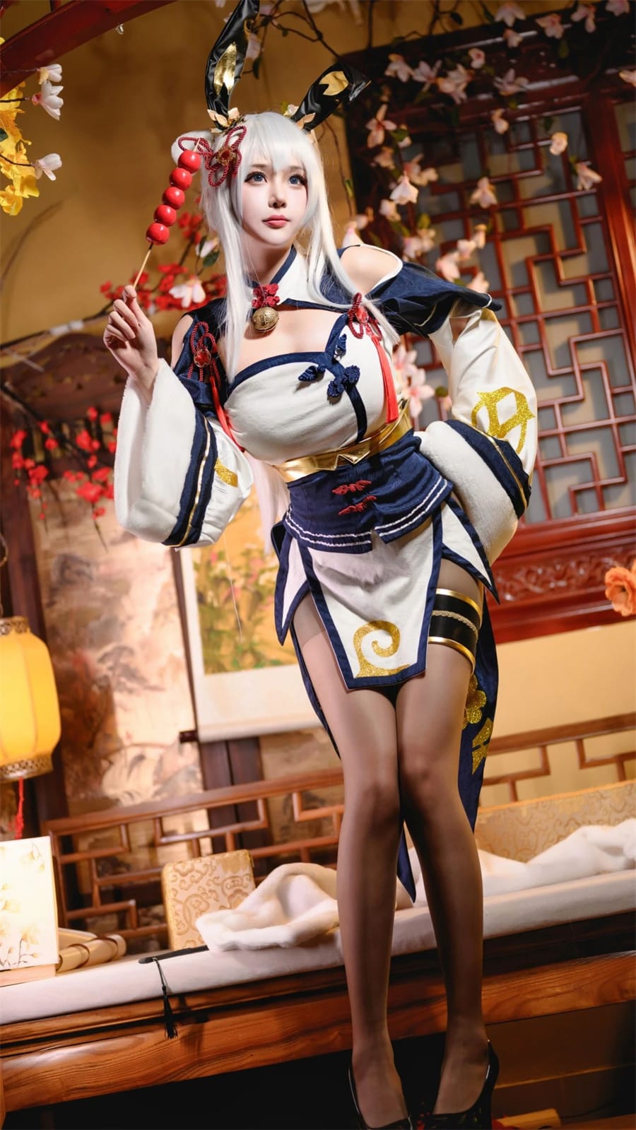 从造型到表现,凛子酱对角色的理解与还原无可挑剔。她的发型精致,清新的白色与粉色渐变恰如兔兔的纯洁与俏皮,而她的服装则紧扣原作特色,搭配巧妙的配饰,使得兔兔的甜美感被完美诠释。尤其是那一抹巧克力色的冰淇淋,简直让人感到丝滑的诱惑,仿佛透过屏幕能感受到它的甘美与清凉。