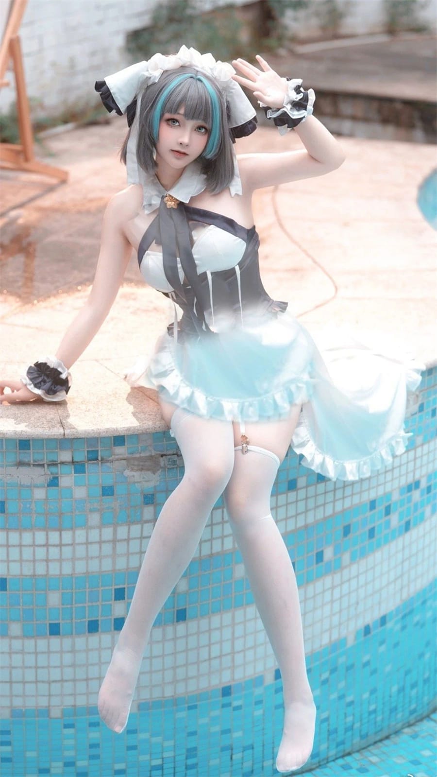 这组作品的魅力,除了哈萝ya的完美还原外,更在于她捕捉到了柴郡这一角色本身独特的气质。通常,柴郡给人的印象是机灵与活泼,但在泳池边的这一瞬间,她散发出的却是娇羞与柔弱,仿佛一只第一次踏入人类世界的小精灵,对这个新奇的环境充满了好奇与兴奋。哈萝ya通过细腻的表情与动作演绎了这一切,让人感受到角色的内心世界,仿佛在泳池边等待着别人走近她的温柔。
