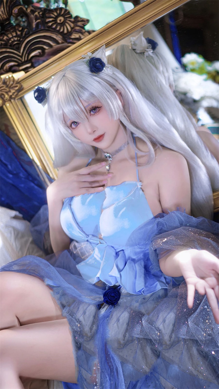 当聚光灯穿透薄雾的刹那,那个立于舰桥的身影让整个空间都化作了流动的海洋——枣糕-吃谷人黛博魂诠释的亚田子重巡洋舰,用最深邃的蓝与最纯净的白,在薄纱与金属的光影间,演绎了一场关于"深海精灵"的视觉交响诗。